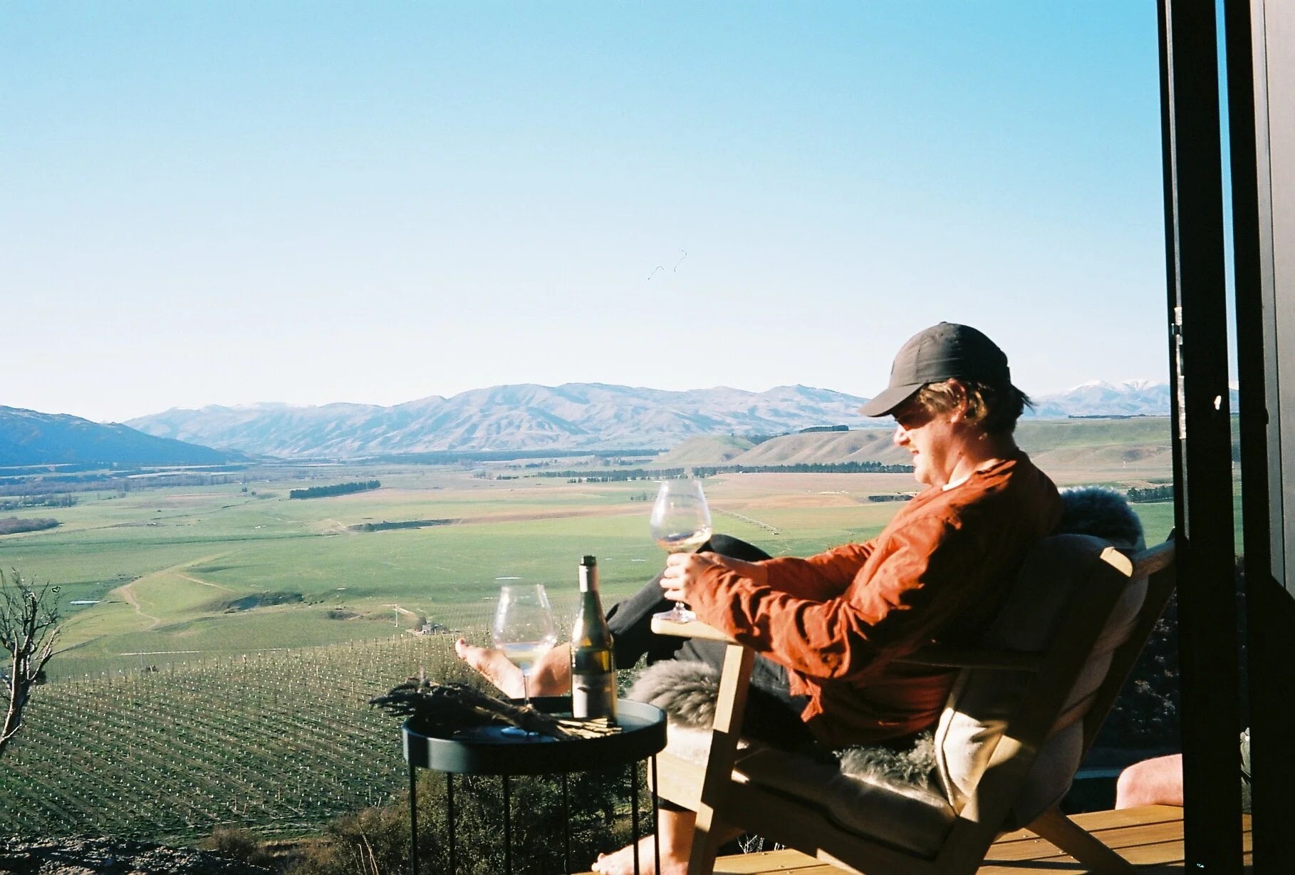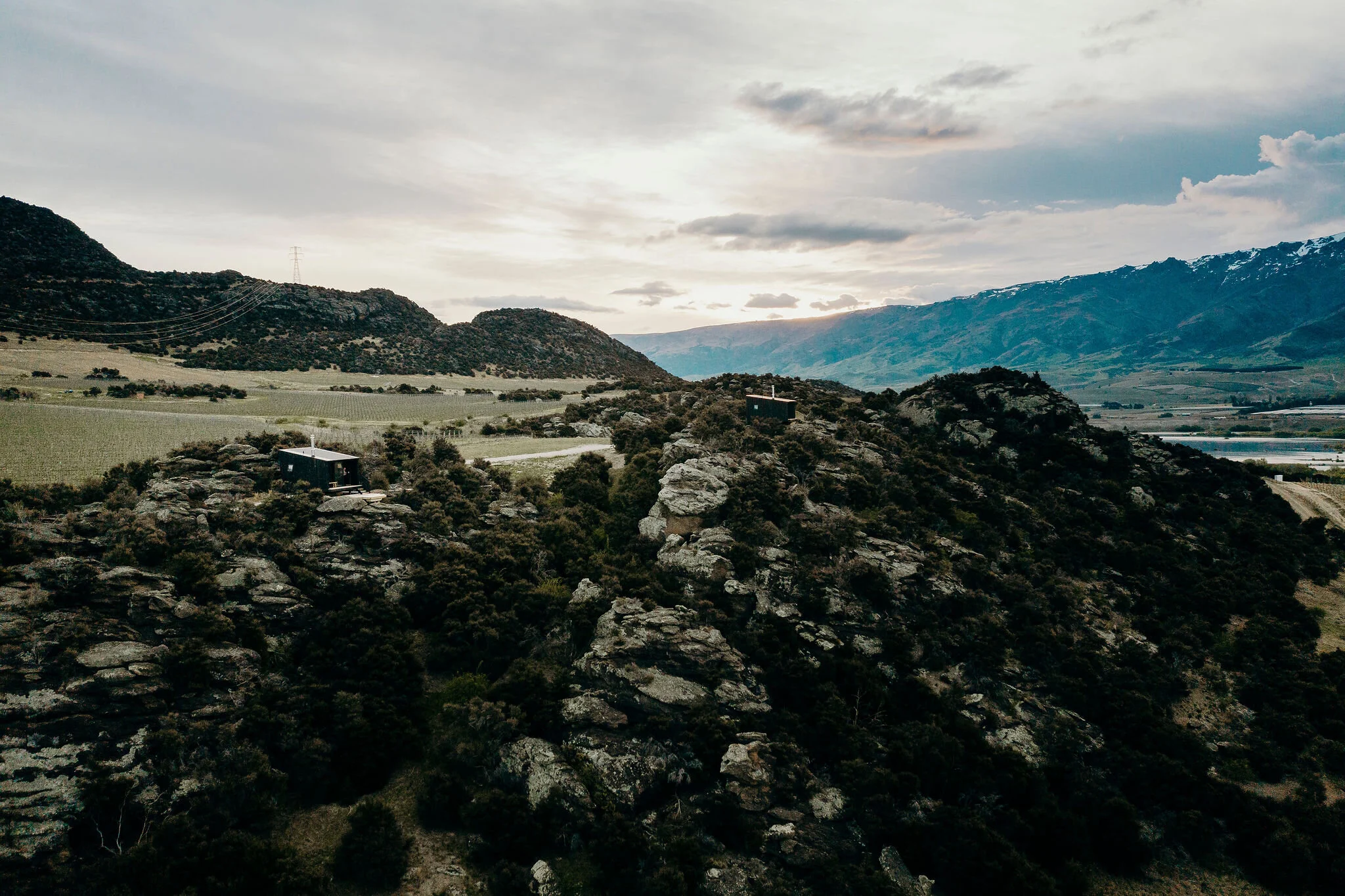 The cabins are perched on a rocky outcrop at the foothills of the Dunstan ranges, overlooking the panoramic Clutha basin. Your only neighbours are the ever changing vines, bird-life and pesky rabbits